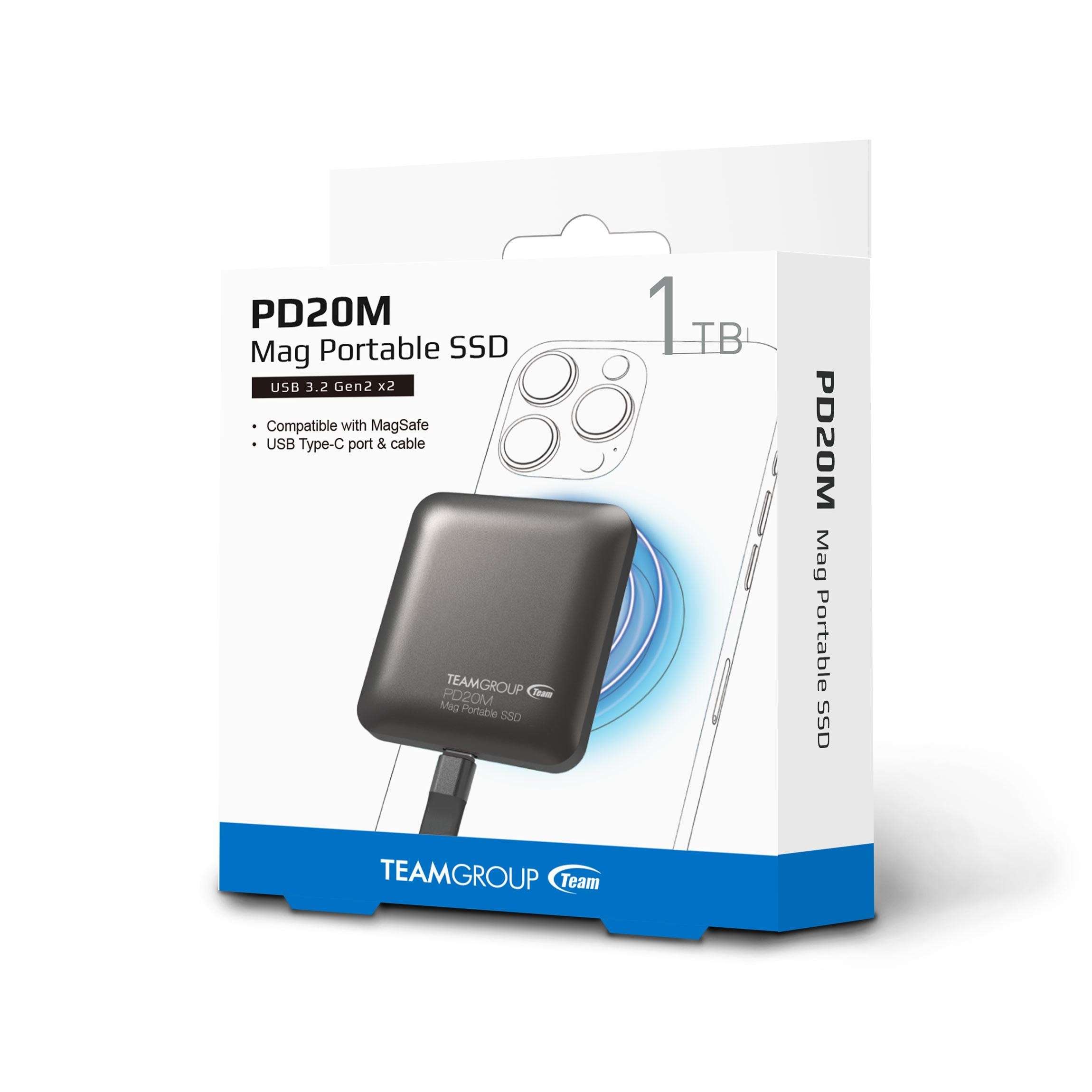 Team Group PD20M 1TB Mag Portable SSD USB 3.2 Gen 2×2 Type-C Compatible with iPhone 15/15 Plus/15 Pro/15 Pro Max, Speed up to 2000MB/s (TPSEG2001T0C108)